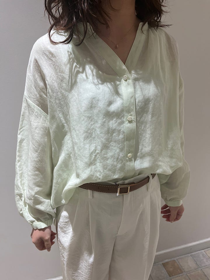 〔ONE SIZE〕《一部追加予約》〈手洗い可能〉IMPERIAL LINEN 混 バンドカラー スキッパー シャツ