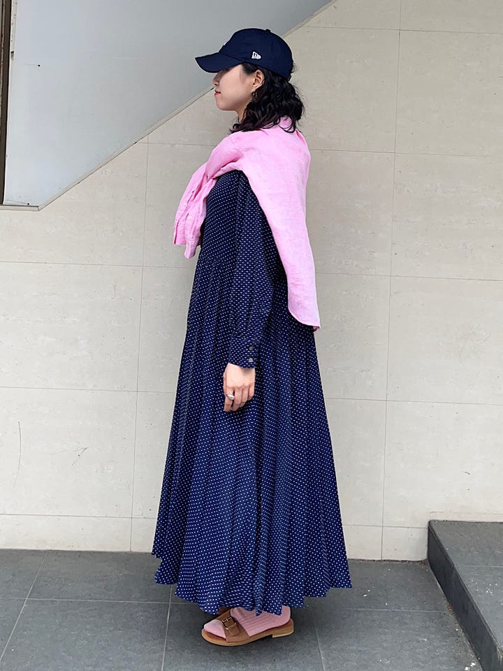 ◆ 商品名: ドットバンドカラープラーツロングワンピース