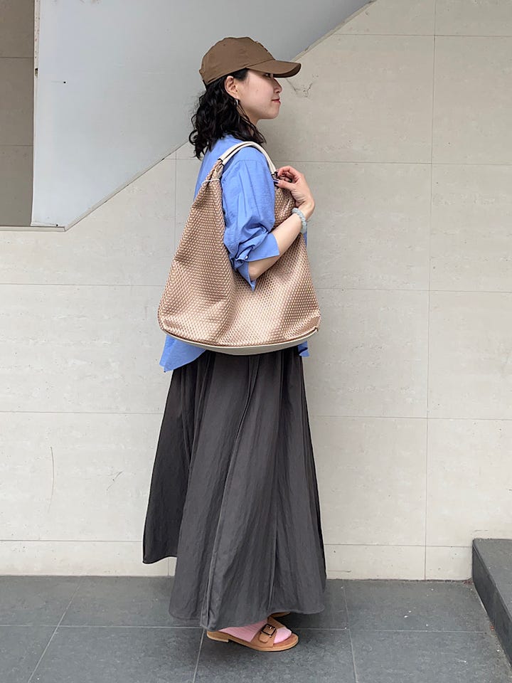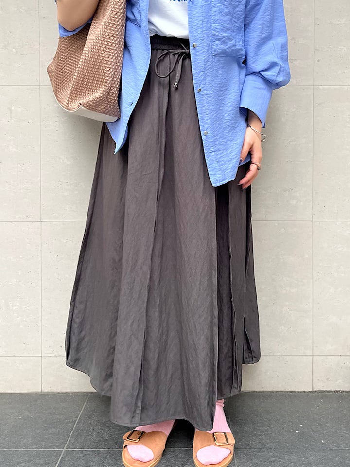 〔ONE SIZE〕SHIPS any:〈洗濯機可能〉ツイル アウト シーム イージー ギャザー スカート