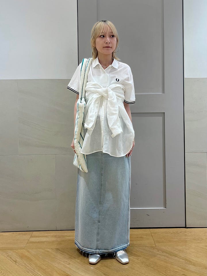〔36〕SHIPS Primary Navy Label:ブリーチ 5ポケット デニム スカート