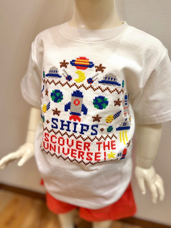 〔100〕SHIPS KIDS:100〜130cm / スペース 刺繍 Tシャツ