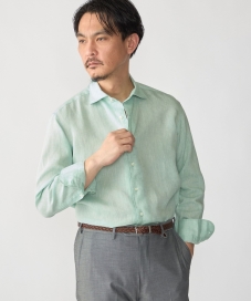 〔SMALL〕SHIPS: ウォッシュド リネン ワンピースカラー ソリッド シャツ