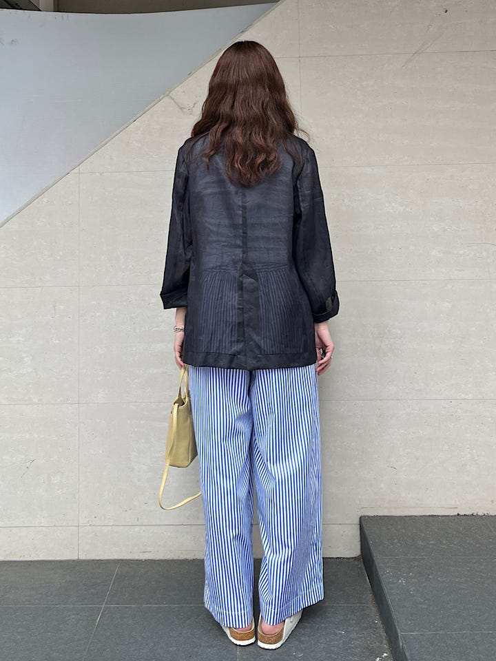 着心地:サラッとしていて軽く、これからの暑い季節にも日差し・冷房避けとして重宝するかと思います。シャツのような透け感があるので、あえて柄物のインナーを合わせても◎