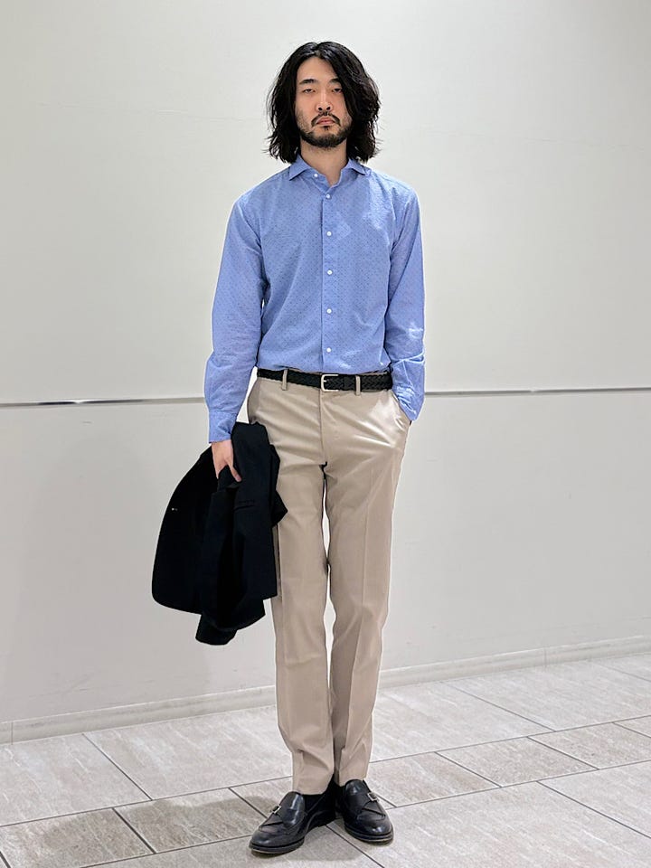細身のシルエット。クールビズ等におすすめ。