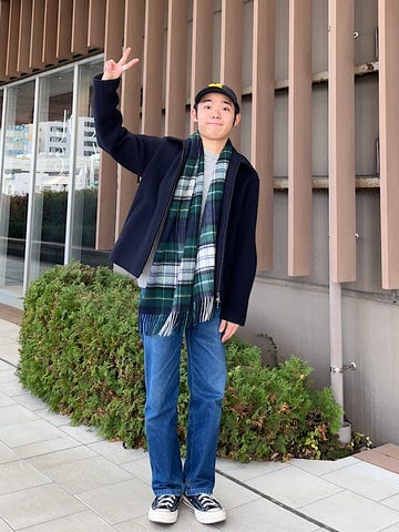 ネイビー×モノトーンスタイル。 シャープなシルエットのジャケットですが柔らかい素材と仕立てでストレス無く着用頂けます。