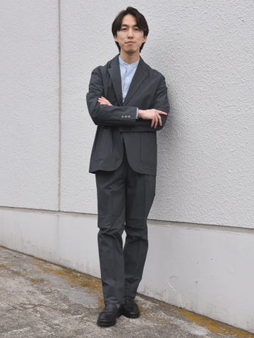 サイズ感: 身幅・アームホール共に細くタイトな印象。今回はやや太いパンツを着用しているためサイズアップして着用。