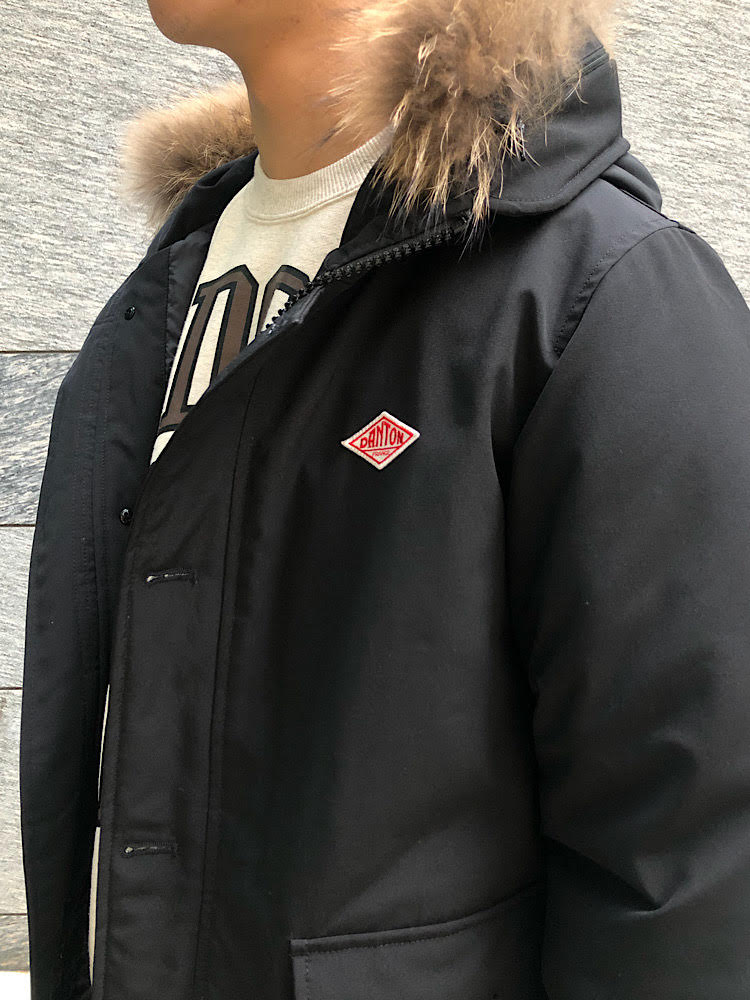 主役級のDANTONのダウンにインナーはあそび心のあるロゴスウェットであわせました。