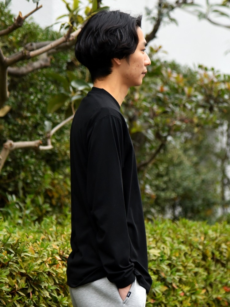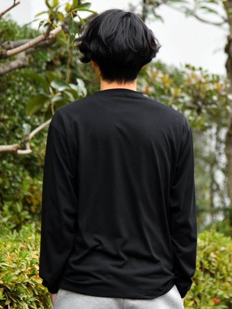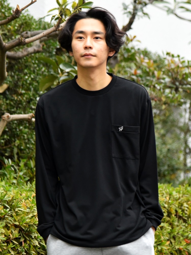 色褪せしにくい機能素材を使用したポケットロングスリーブTシャツ。