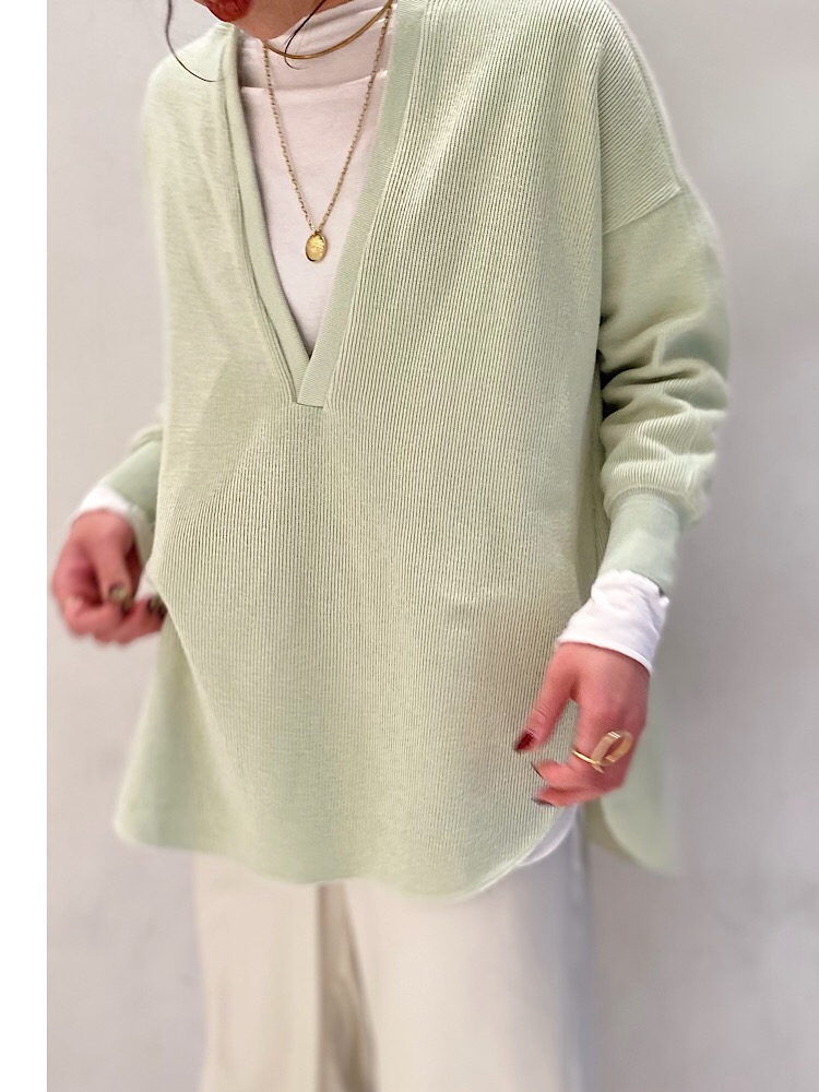 素材感:コットンポリ素材で、柔らかい。程よい厚さで、重ね着しやすい。