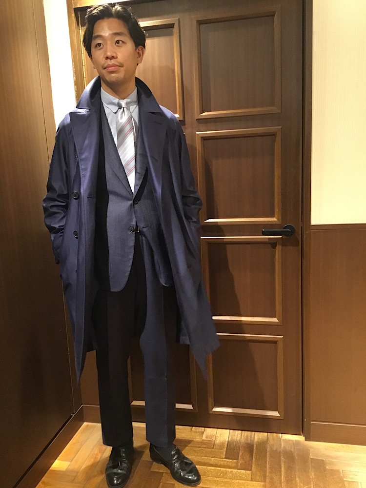 【着用レビュー 】 着用アイテム:コート 身長:178cm / 普段サイズ:L / 着用サイズ:M サイズ感:コートはややゆとりのあるサイズ感で男性らしいシルエット 素材感:ロロピアーナ製のコットン生地はしなやかな素材感です。 着心地:見た目の重厚感と対象に軽い着心地です。 シルエット、生地感共にストレス無く着られる。 見た目にも高級感のあるコットン素材なのでシルクタイと合わせ上品に着こなしたい。