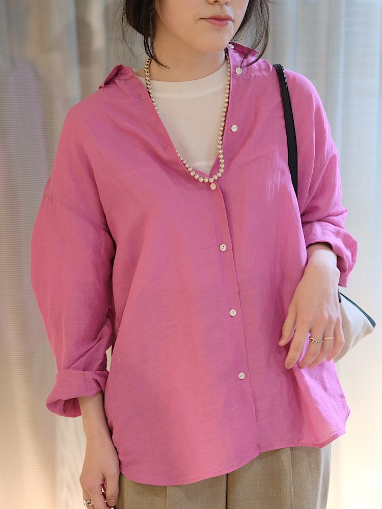 さらに落ち感を加えるためテンセル混の生地を使用し、着用した時にリネンの肌離れの良さと独特の落ち感がプラスされ、女性らしいシルエットに。