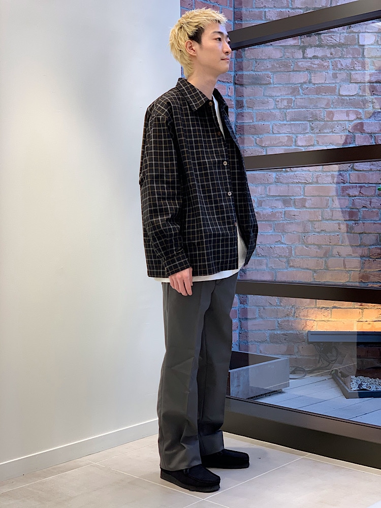オーバーサイズシャツと流行りの細めなフレアパンツを合わせて上下でメリハリをつけました。