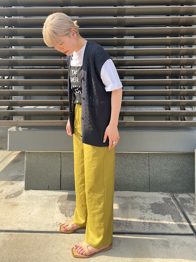 素材感・着心地: 裏地のない生地で夏の時期にも涼しく着用していただけます。ウエストがゴムなので、ストレスなく穿けるのも嬉しいポイント!