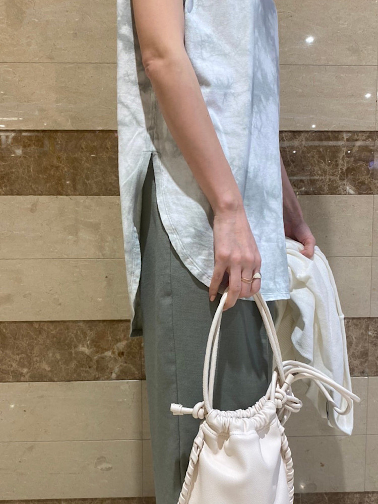 サイズ感:程よいゆとりでボディラインを拾わずストンと落ちるシルエット。着丈長くヒップはしっかり隠れます。