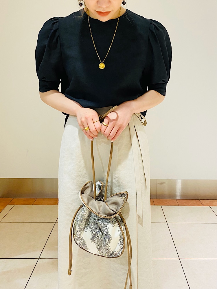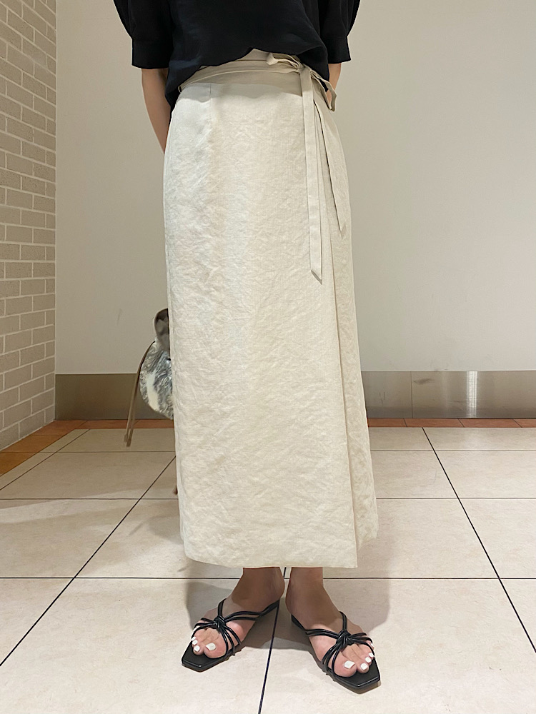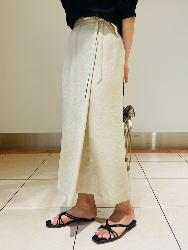 ラップスカートなので、足元はストレスフリーな履き心地。