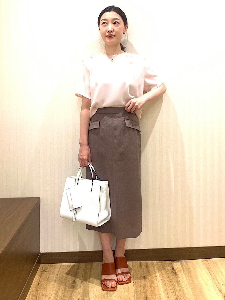 着心地:タイトスカートのピタっと感はなく、自然なヒップラインで合わせやすい1枚です。