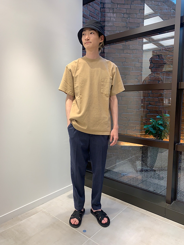 全体的にネイビーで統一感出して足元を黒サンダルで合わせてメリハリをつけました。
