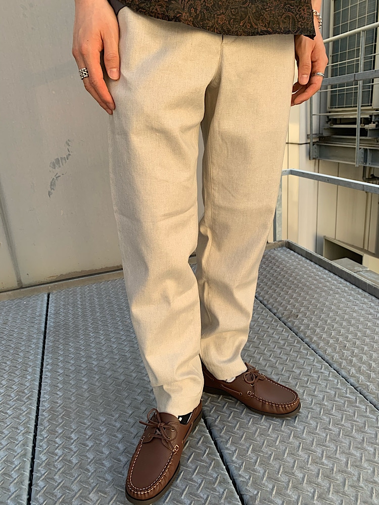 サイズ感:ヒップ部はゆとりを持たせ、裾に向かって細くなるテーパード仕様。