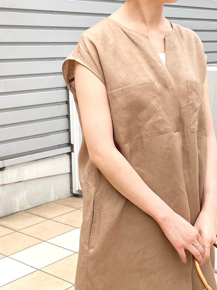 着心地:サラリとしたリネン素材が夏にぴったり。光沢感もあり上品に見せてくれます。一枚でもレイヤードでも決まりやすいシルエットです。