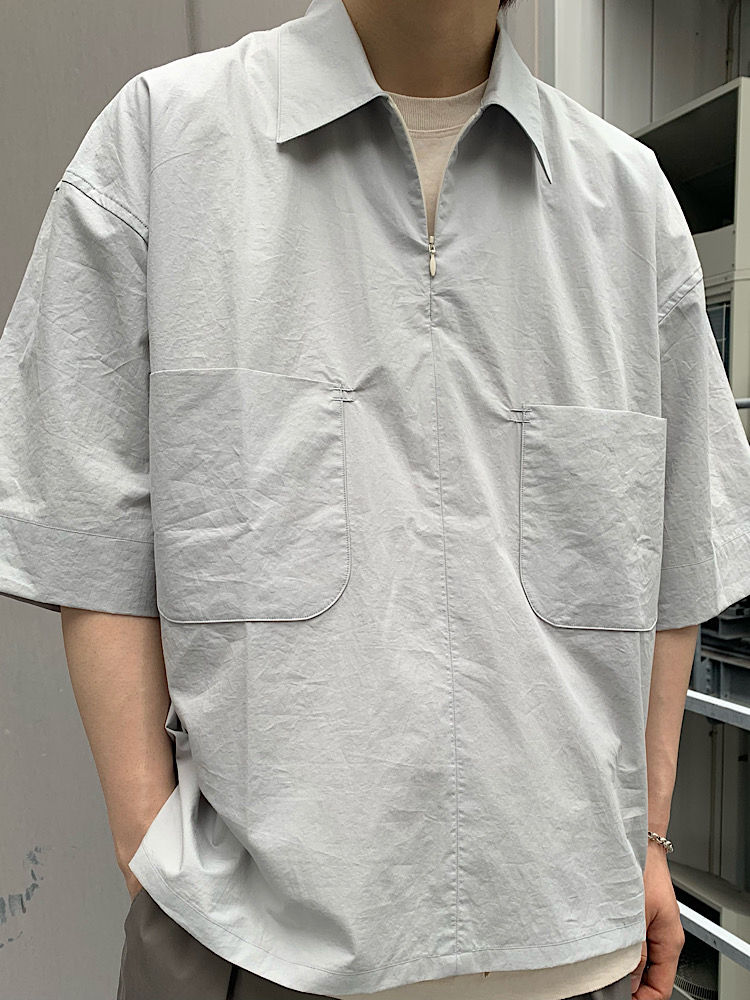 サイズ感:ゆとりあるやや着丈の短いボックスシルエット。