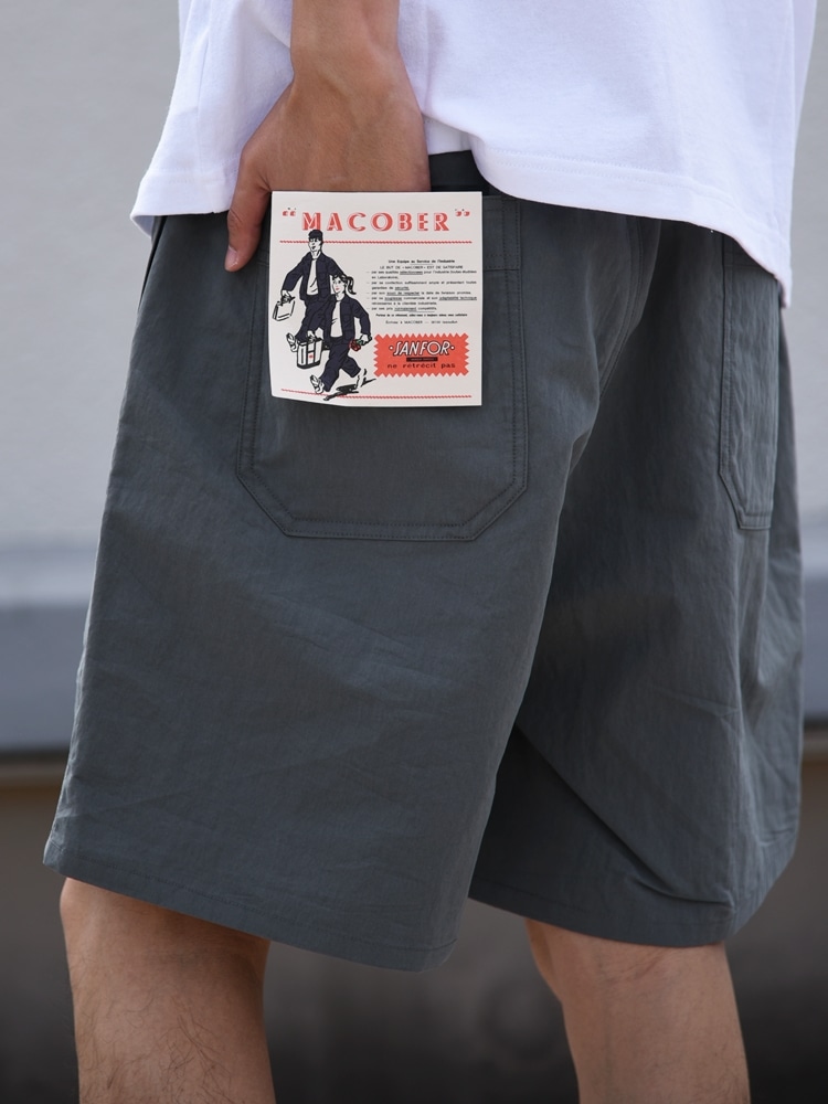 SHIPSがMACOBERに別注したTシャツとバギーショーツを使ったラフなコーディネート