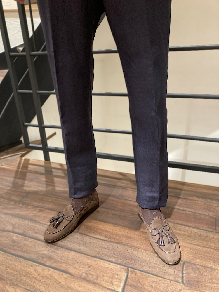 柔らかいリネン素材。タイドアップだけでなく、ニットTなども合わせやすい。