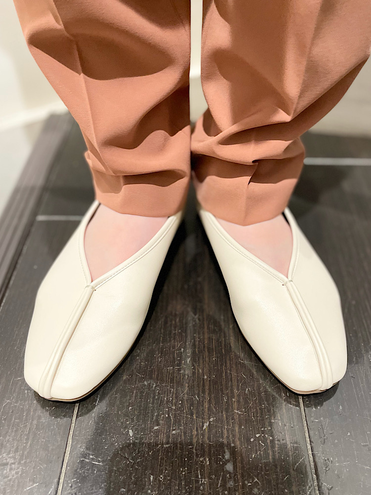 商品紹介:素材が柔らかく、足への負担も少ないです。足の甲の部分が深めな為変に力が入らず歩きやすいです。