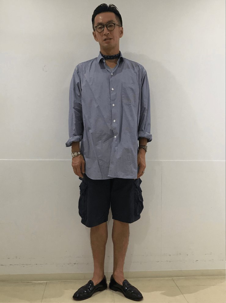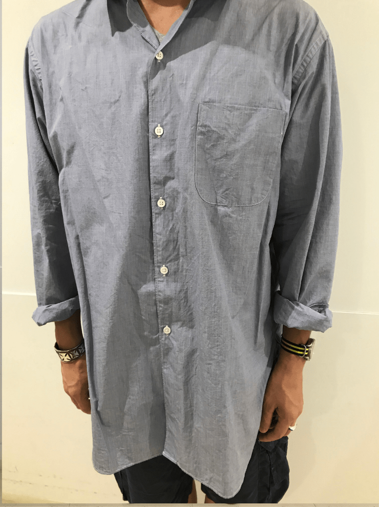 着用アイテム:シャツ 身長:183cm/普段サイズLサイズ/着用サイズLサイズ サイズ感:ゆったりめだがジャケットのインナーにも着れそう 素材感:少し薄めのコットン生地