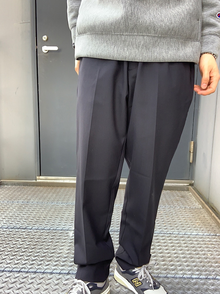 サイズ感:センタークリースの入ったキレイ見えするスラックス仕様にデザインし、穿いた際に絶妙なリラックスシルエットになるように計算されたパターンを構築。