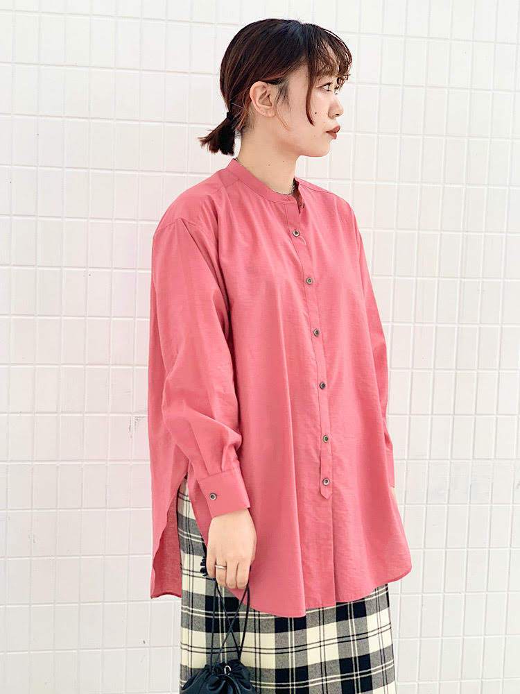【素材感・着心地】やや透け感とハリ感があり、今からの季節にぴったりの一枚です。