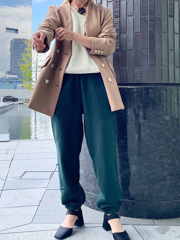 着こなしポイント: メンズのパンツですが、トップスは足元は女性らしいものをチョイス