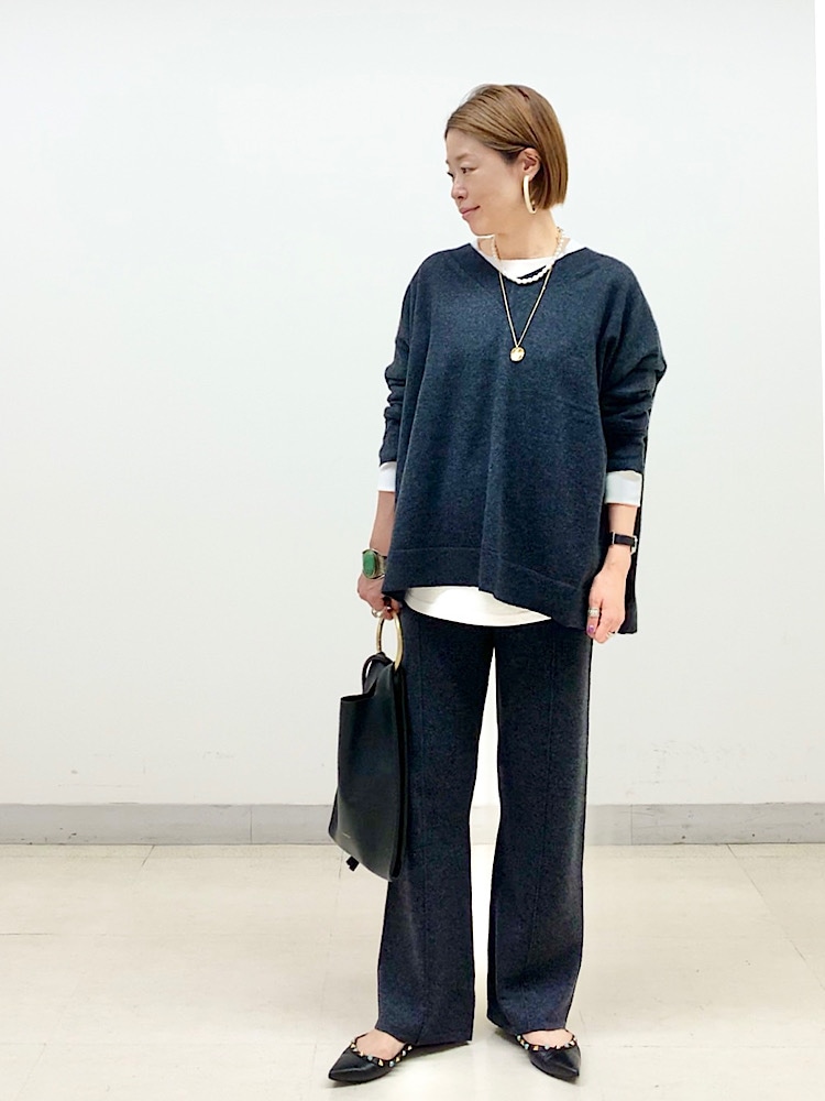 素材感・着心地:ストレスフリーの履き心地。裾のスリットも、スタイルアップして見せられ、ニットパンツでも綺麗なシルエット。