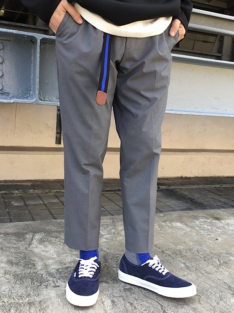 無彩色を中心としたシンプルなコーデですが、足元やベルトをブルー系色にすることで都会的な印象に!