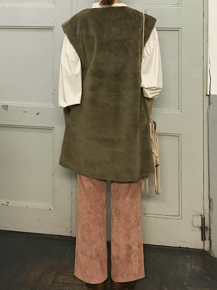 素材感・着心地:ポリエステル100%ですが、非常に柔らかく軽いです。リアルファーのような上品さがあります。