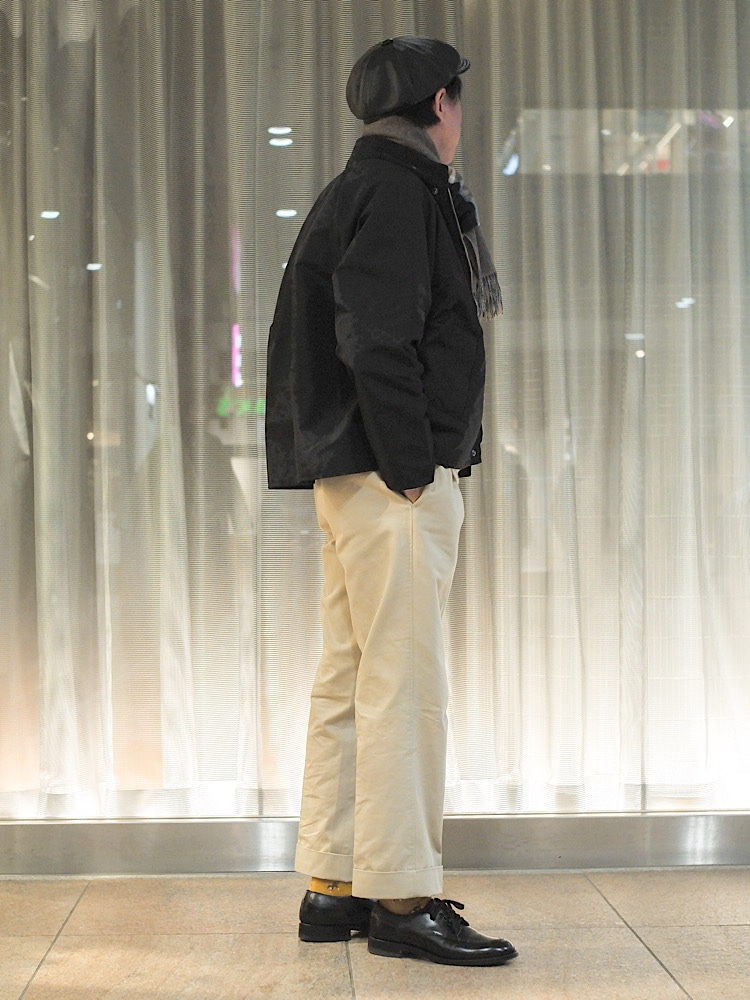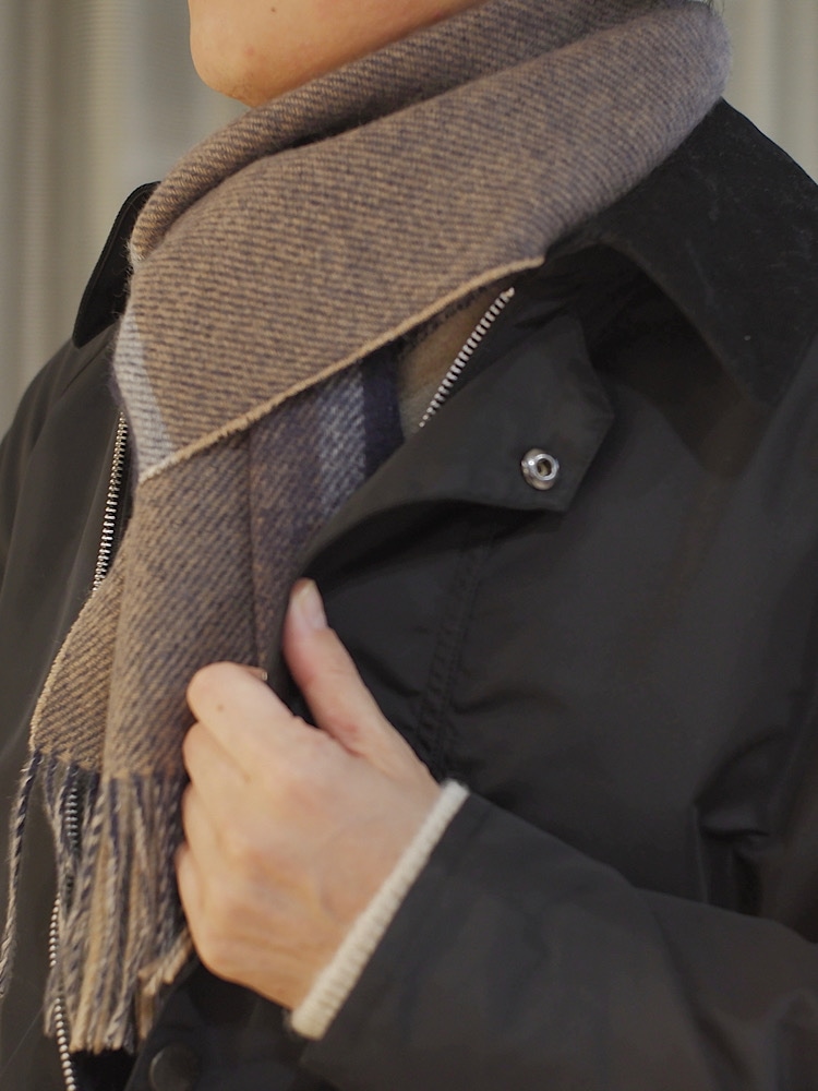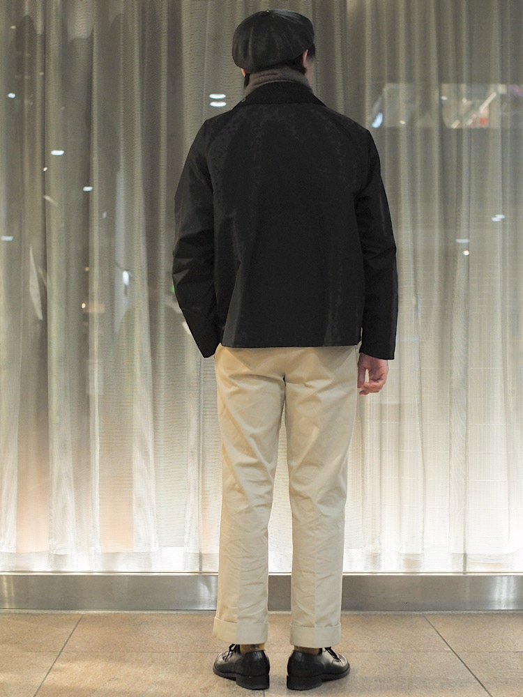 ナイロン。軽アウターながら、ニットなどに重ね着しても使い易い。