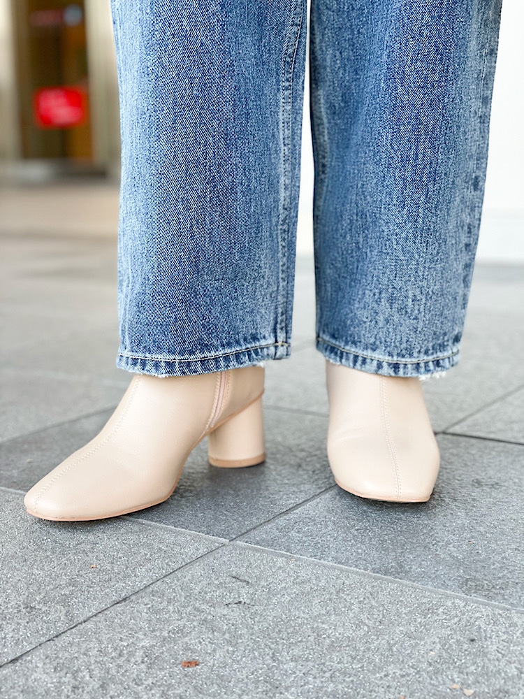 着心地:ノーカラーな襟元とAラインのシルエットが大人カジュアルに