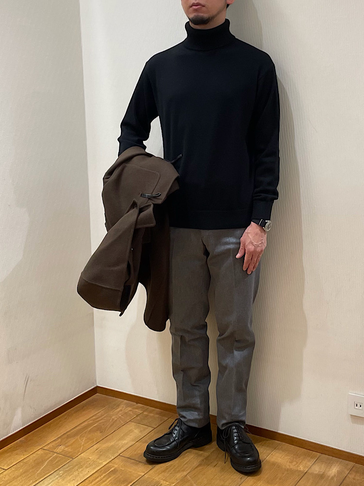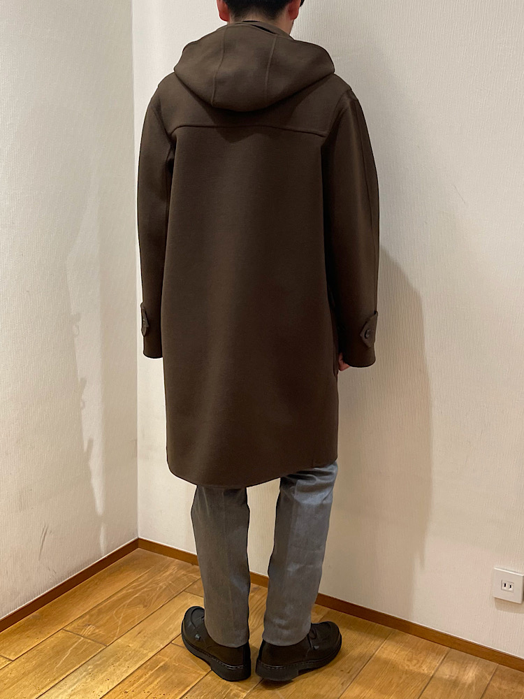 素材感/着心地:ダブルフェイスのウール素材が軽くて着やすい。ゆったりしているので着込んでも動き易い。