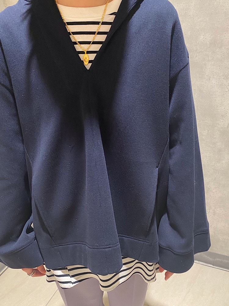 サイズ感:ゆったりとしたシルエットに、深めのVネックとサイドスリットでレイヤードしやすいのでおすすめ◎