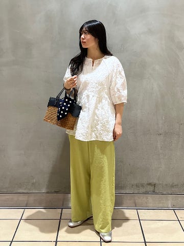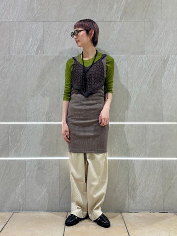 素材感・着心地:透け感が可愛いコットン100%。タートルのニットやTシャツ等レイヤード次第で沢山の着こなしが楽しめそうです◎