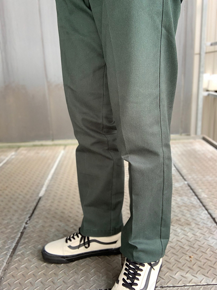 サイズ感:脚の綺麗なラインが出るようにややテーパードをかけ、それに合わせて股上もやや短くしたパターン。