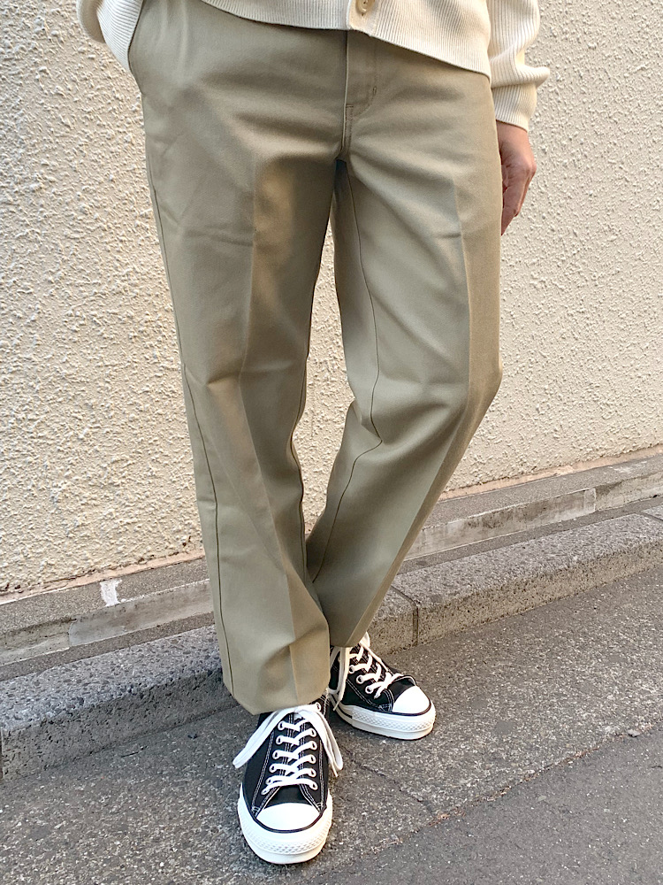 素材感/着心地:シップス 別注のディッキーズです。テーパードシルエットでキレイめにも着用いただけます。