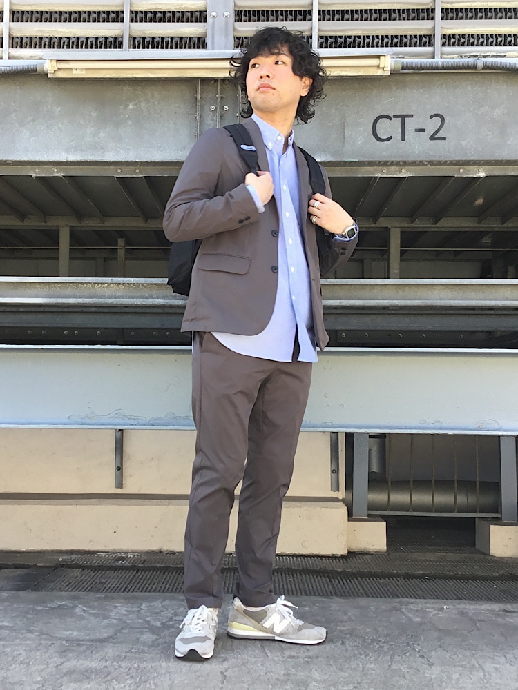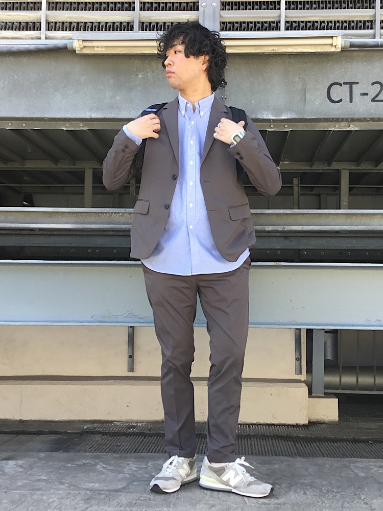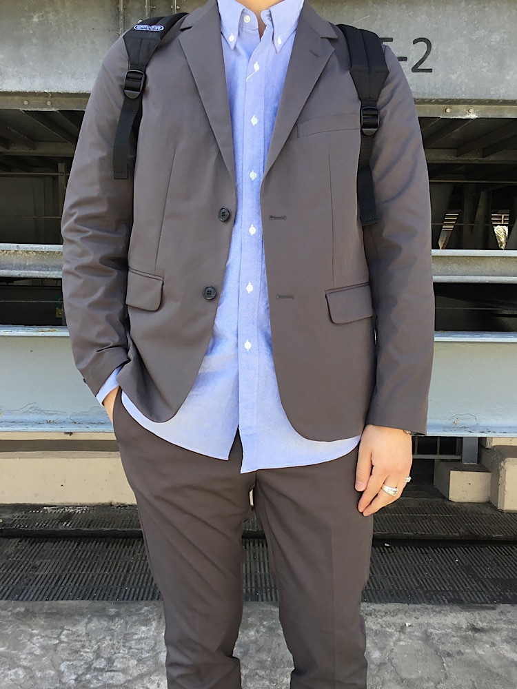 今回はオールシーズン着ていただけるセットアップスーツにボタンダウンのシャツを合わせてます!