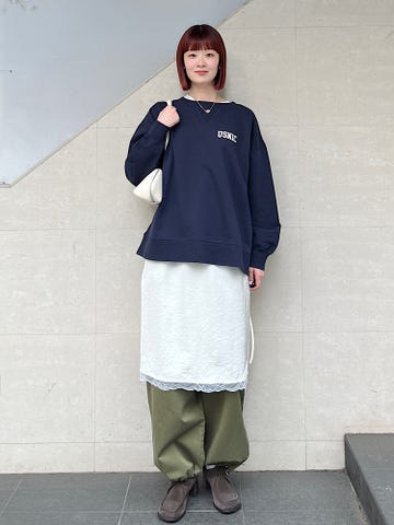 サイズ感:身幅がしっかりあり、腕もゆとりのあるシルエットです。