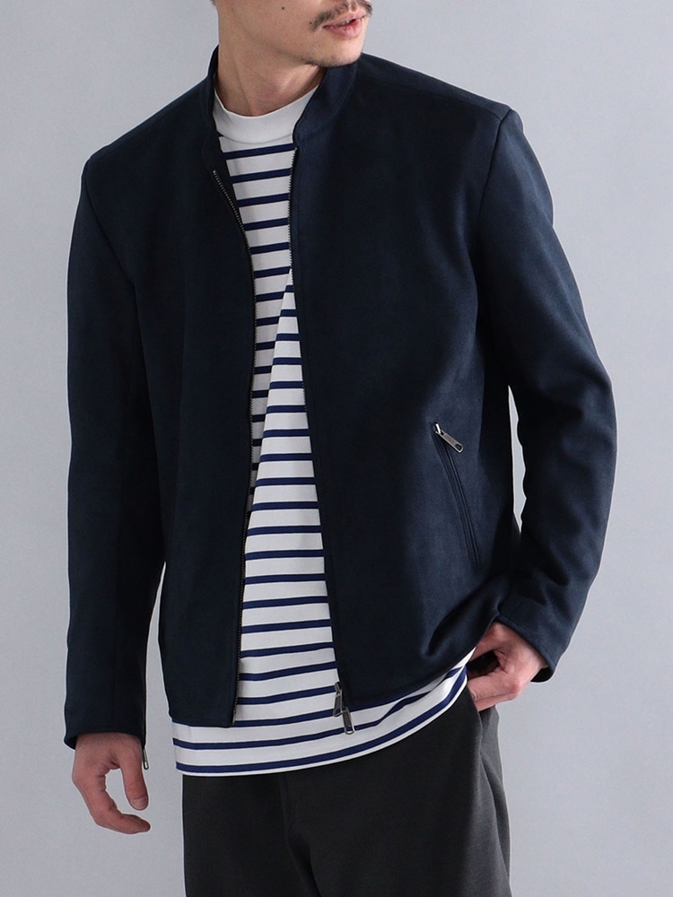 フェイクスエードのライダースジャケットを使用したコーディネート第1弾!