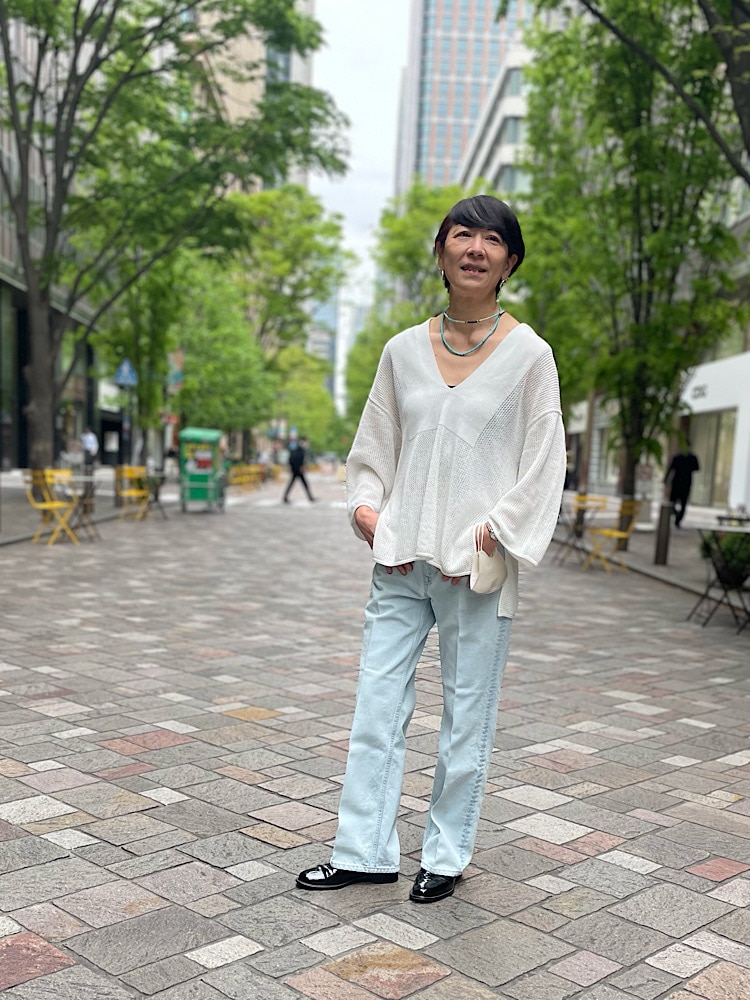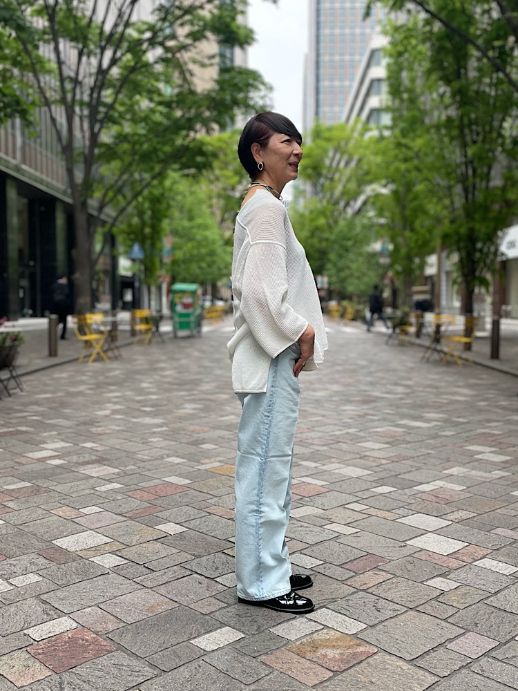 ■素材感・着心地:コットン100%。センタープレス入りストレートデニム。大人の女性にはいて欲しい。