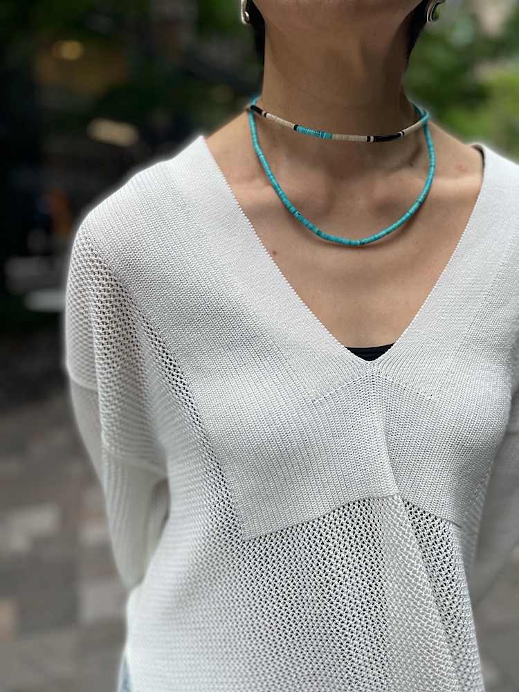 ■素材感・着心地:MIKIAの天然石ネックレス。ターコイズ ジェット カレンシルバー等使用したネックレス。重ねて首元を華やかに!