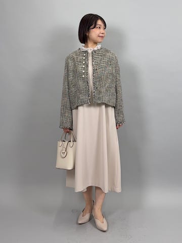着心地:着ていることを忘れてしまうくらい軽く着心地が良いです。後ろギャザー部分でストラップ調整ができるので、インナーに合わせて雰囲気を変えられます。これからの季節はTシャツでカジュアルさをプラスするのもおすすめです!