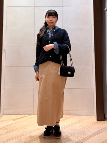 サイズ感:タイトシルエット。生地は柔らかくテンションがあるので、意外と体型は選ばず履いて頂けると思います。