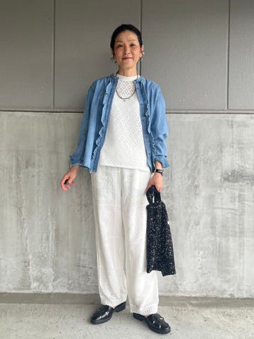 素材感・着心地:麻が入っており、サラッとした素材。薄手なので夏でも着て頂きやすいです。