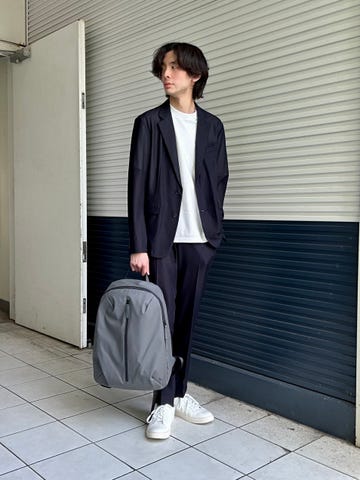 【素材感・着心地】ウエストはゴムで着脱が楽です。もも周りはゆったり目だが裾にかけてテーパードがかかっており綺麗なシルエットです、